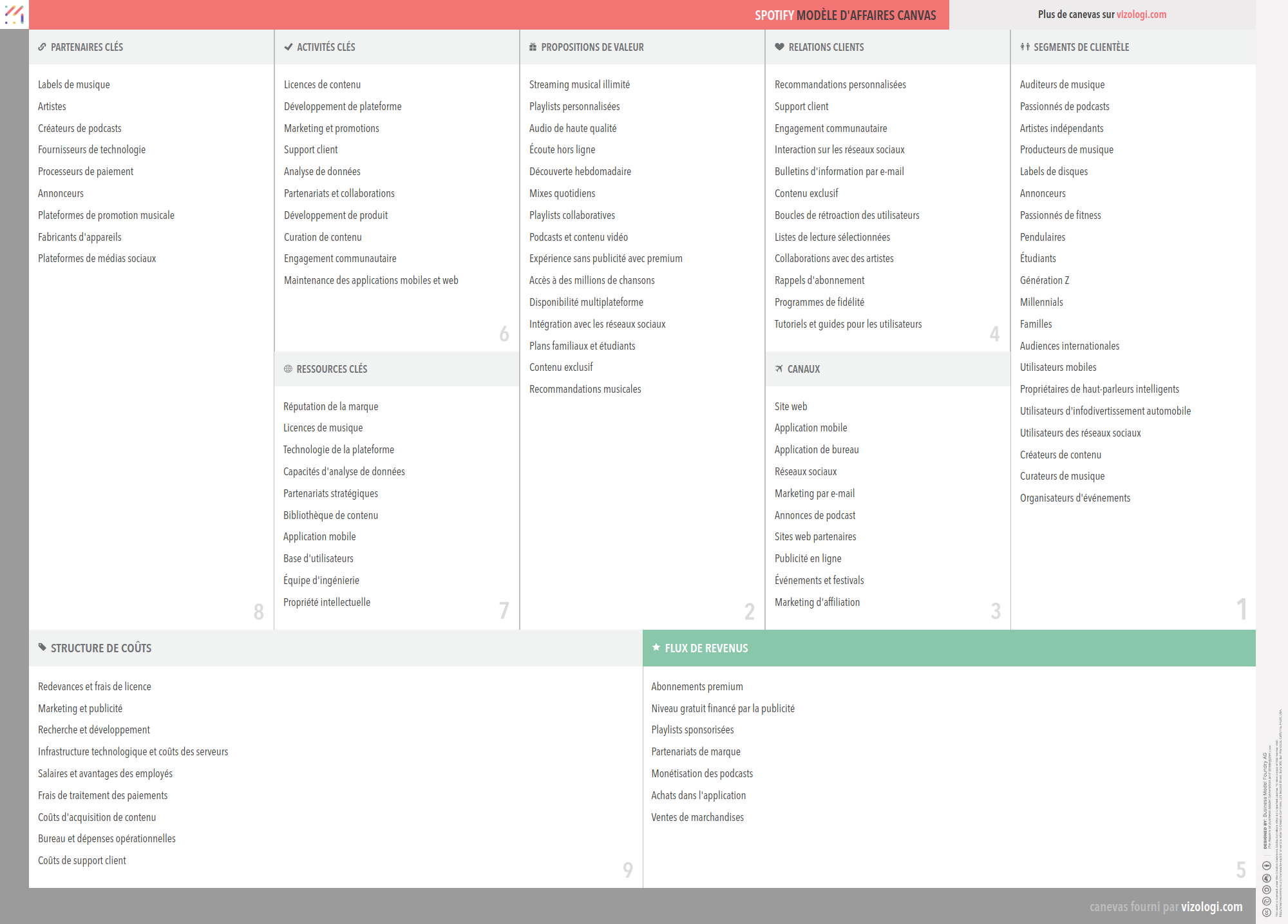 El modelo de ingresos diversificados de la empresa de equilibrio con ofertas freemium y premium para mejorar su croissance y sus operaciones. Las publicidades generadas por los ingresos de los usuarios de la oferta gratuita a través de publicidades de audio, visuales e interactivas. Durante este tiempo, son service premium génère des revenus significativatifs par le biais des frais d'abonnement. Según las últimas noticias, Spotify monetiza también sus podcasts gracias a acuerdos de contenido exclusivo, segmentos patrocinados y socios con creadores, diversificando además sus fuentes de ingresos. Este enfoque multifacético asegura un flujo de ingresos estable y permanente para la empresa de inversión en nuevas funciones, colaboraciones con artistas y expansiones de mercado, consolidándose además como líder en la industria del streaming numérico.