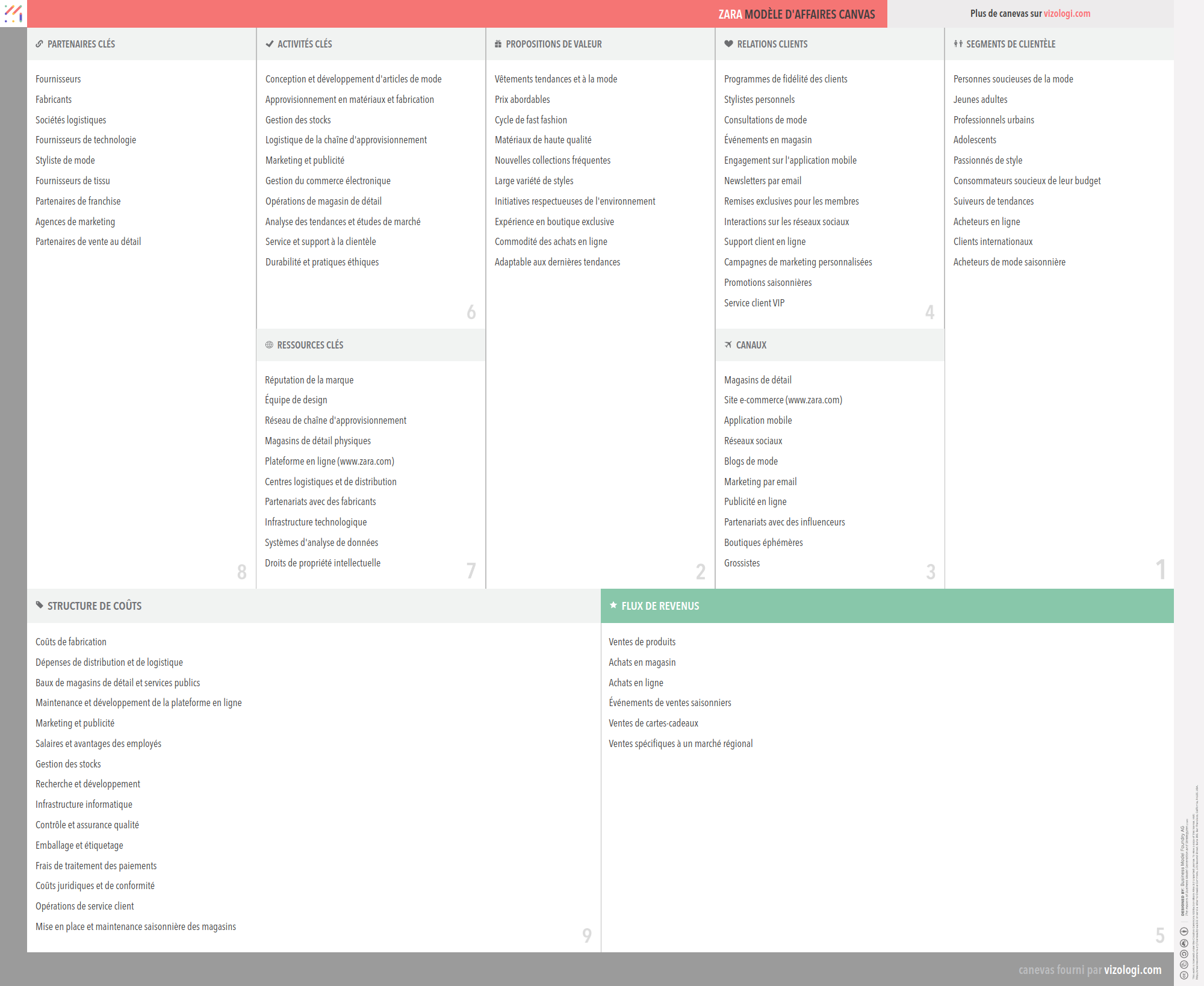 El lienzo del modelo de negocio de Zara