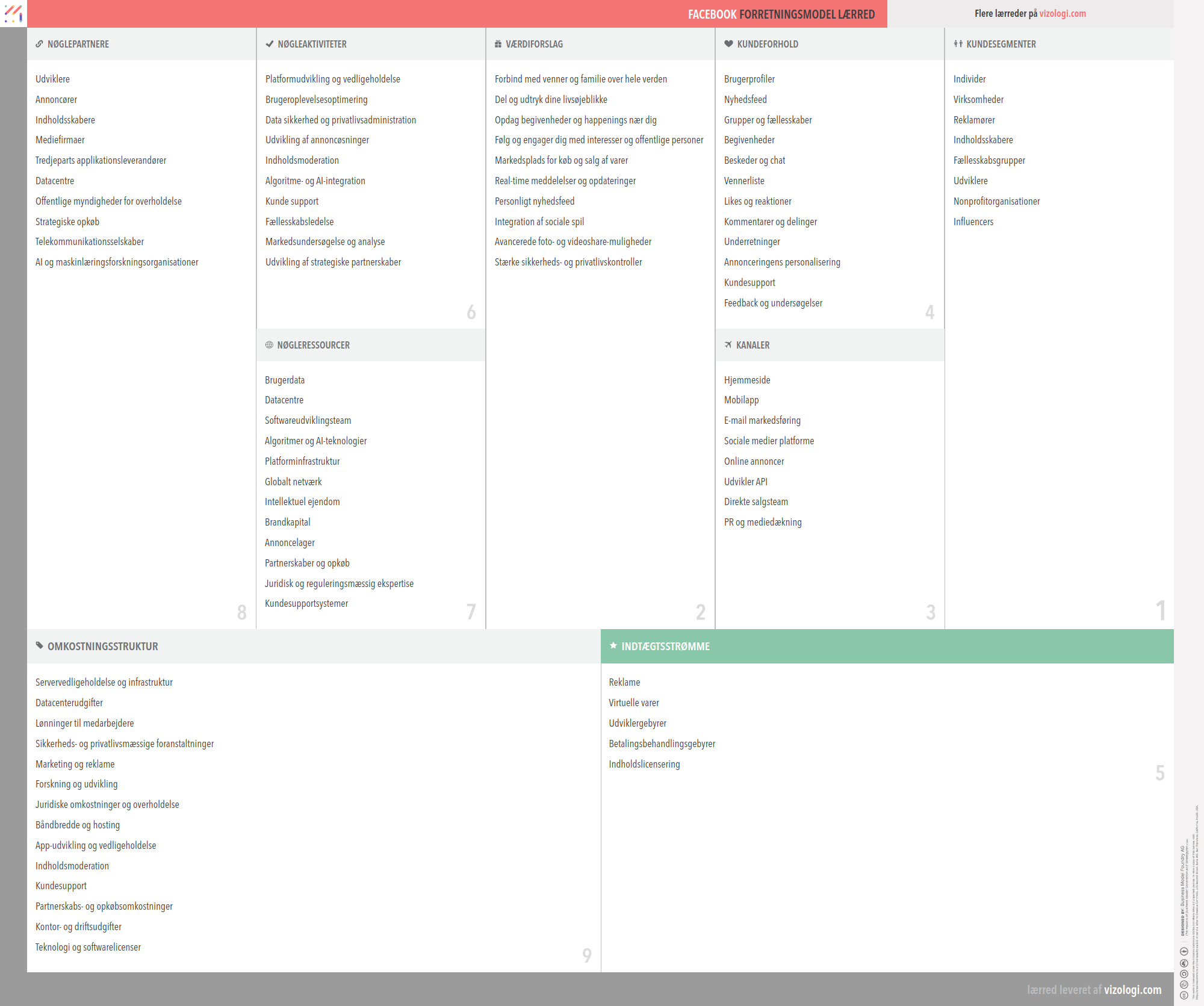 Facebook tjener penge ved at kombinere forskellige forretningsmodeller. Nedenfor finder du en liste over de forskellige monetiseringsstrategier, der er identificeret for denne virksomhed: