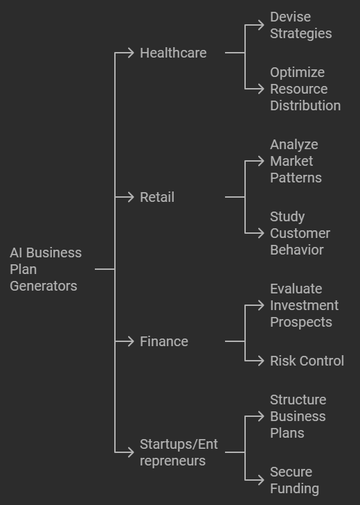 Real-world implementation of AI business plan generator applications span diverse industries: